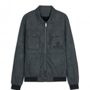 Áo khoác da ghi xám 2 túi hộp in chữ ngực trái